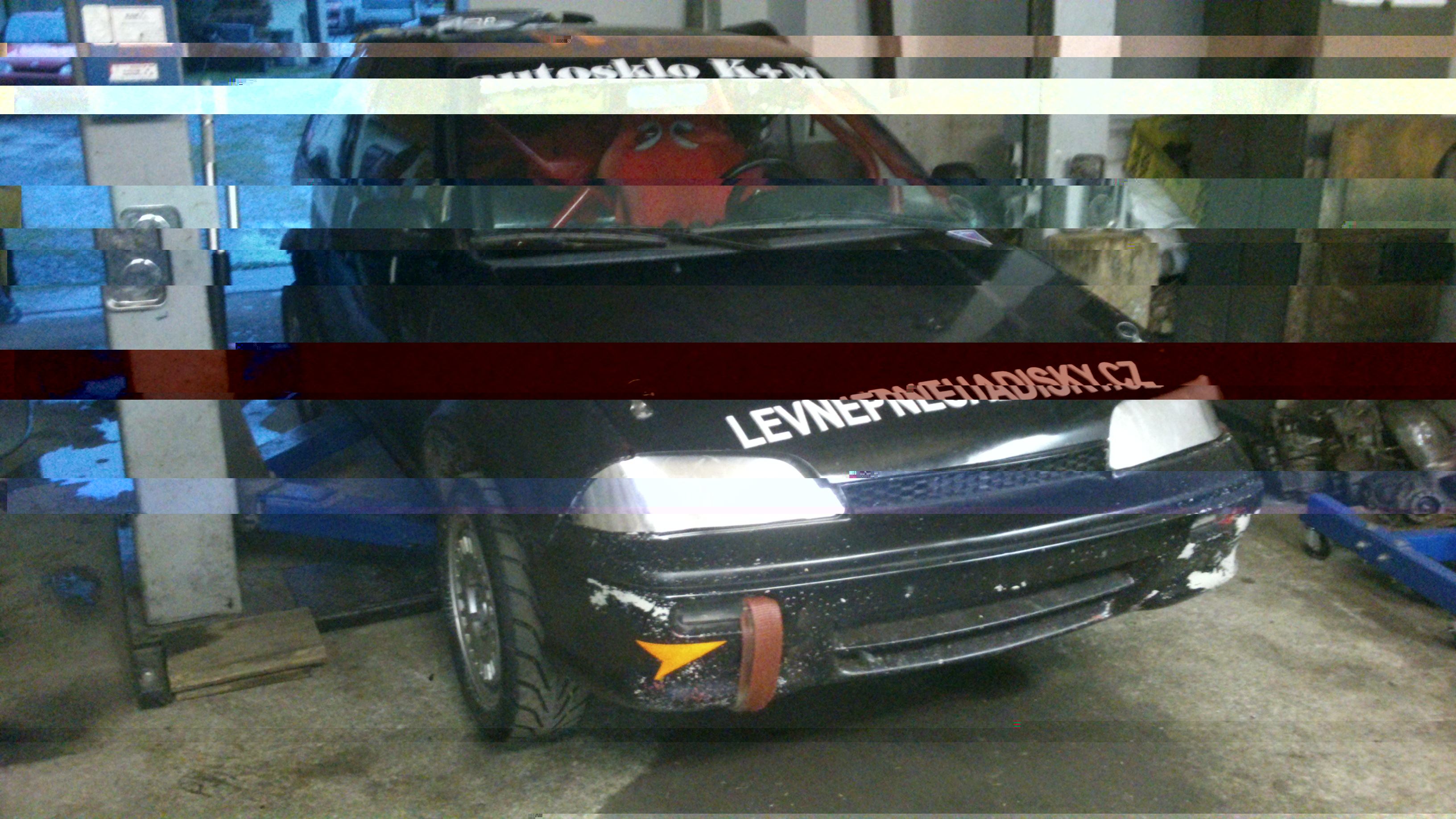 no a ve finále se tatíkovi podařilo lehce ulejt start (fotobuňky to nevzaly, takže buď nešly, nebo to bylo OK) a dostal se na druhý místo za Koutným na 130RS a za sebou měl právě Veverku na 106. toho pustil před v druhém kole (dával o sobě zdatně vědět na zadním nárazníku), ale další, pan Peruth s autokrosovou plechovkou, asi nepochopil, že jde o hovno a nabral taťku na dveře takovým způsobem, že mě teď čeká, opět, výměna prvaýho prahu, dveří a oprava sloupku... a blbější místo na takovejhle šťouchanec si vybrat nemoh, mohla ot bejt elegantní bouda... nebejt toho, tak to byl super víkend, tohle trošku zkazilo naládu na konec, nicméně i tak se podařilo předjet dvě auta a dojet na čtvrtém místě v divizi do 1600... a to vůbec nezní zle
