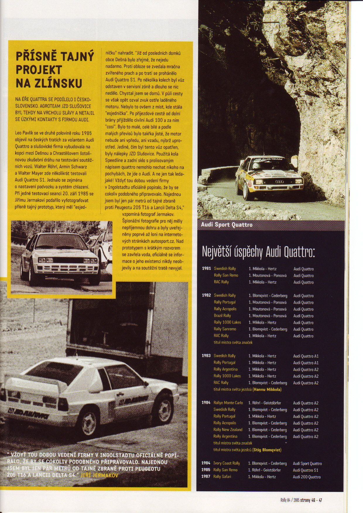 Uvítám pokud bude někdo mít nějaká fota nebo popř. články. Víc očí víc vidí.Já čerpal něco z EWRC a hlavně od p.Kloučka.