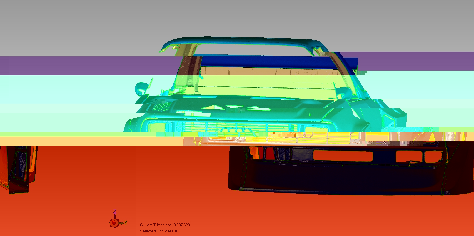 Přikládám foto neupraveného modelu ze scanneru. Mohu říct, že z toho mám velikou radost. Model se bude muset ještě řádně upravit. Scanner pracuje v přesnosti cca +- 0,008 mm a tím pádem zachytí každou prasklinku nebo prohlubeň. Třeba nalepené samolepky jsou na povrchu zřetelně vidět. Dále se budou muset upravit nenaskenovaná místa jako je třeba u okna pod gumou a také dodělat místa kam se scanner nedostal. Většinou to jsou ale velice malé plochy takže bych to neviděl nijak dramaticky. Ale co vidím dramaticky je vyhlazení kompletního modelu a dále ůpravu jednotlivých dílu pro naší budoucí CNC mašinku.. Je to prostě koníček a několik desítek večerů na to padne a stejně tak to vidím i s chlastem :-DDD